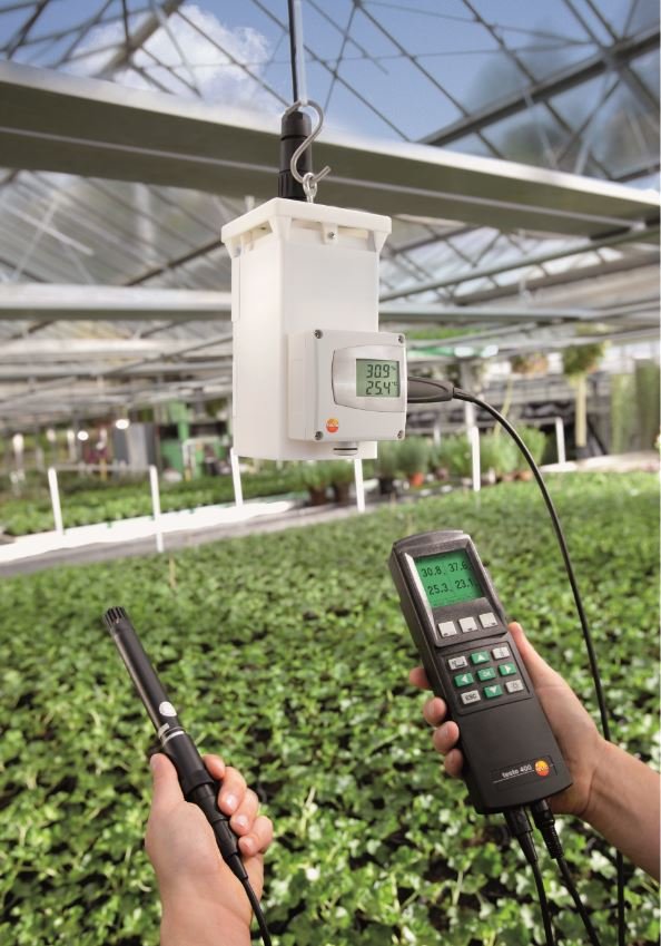 The testo 6631 transmitter was developed specially for monitoring critical ambient conditions in greenhouses, e.g. for bio research purposes. Precise and reliable humidity measurement is indispensible in these applications, in order to avoid costs caused by failed experiments.